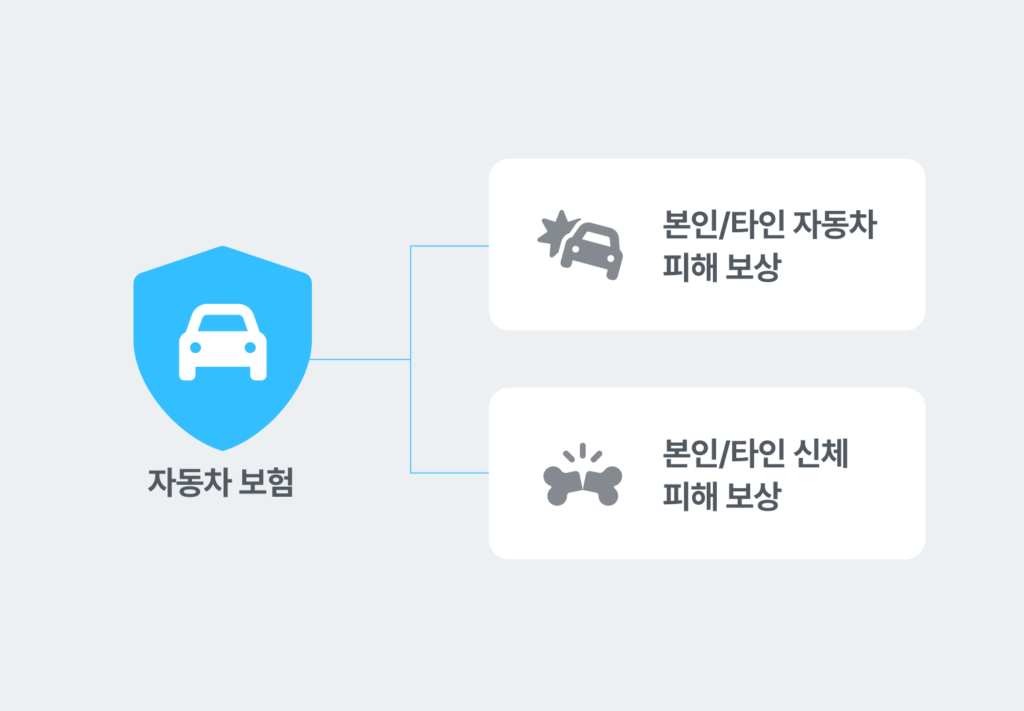 - 책임 보험: 자동차손해배상 보장법에 의거해서 자동차 사고를 대비해 국가에서 의무적으로 가입하도록 규정한 의무보험이에요.