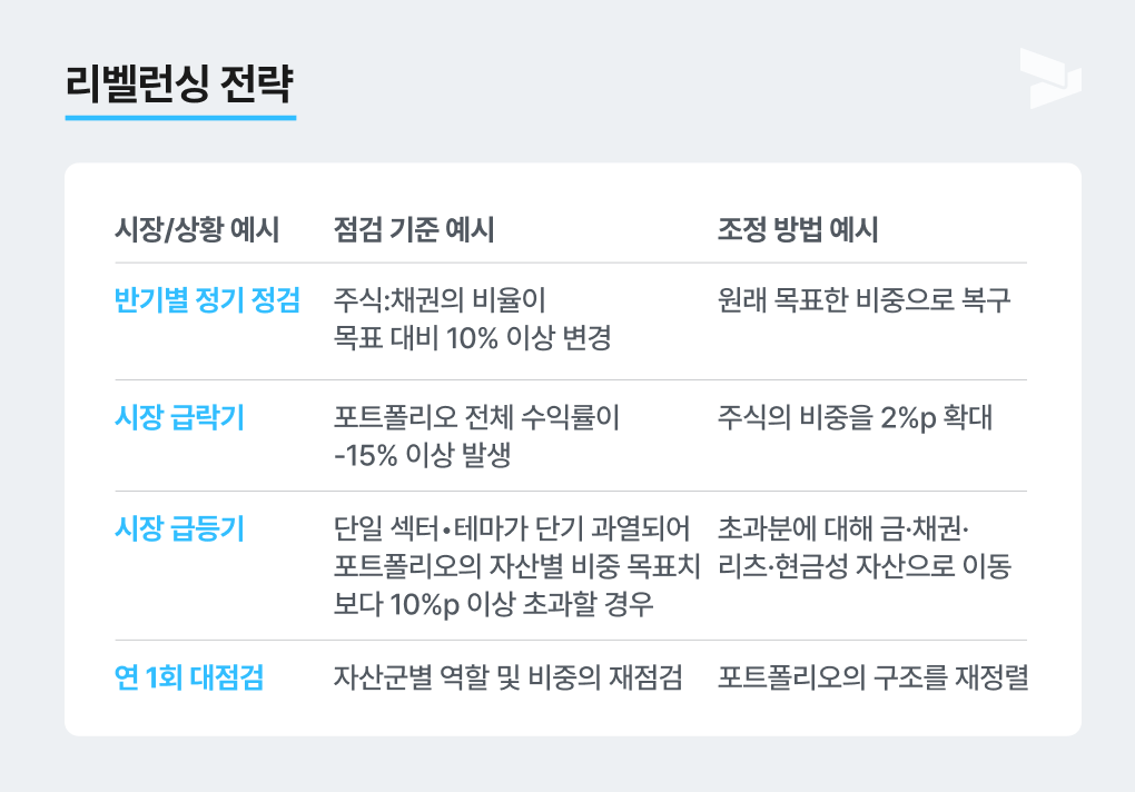 리밸런싱은 다음과 같은 시점에 시행할 수 있습니다.