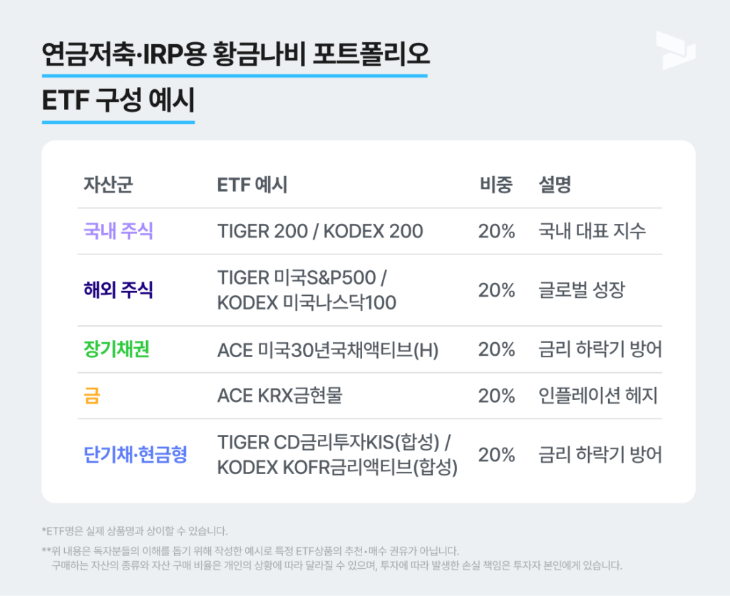 이제 실제로 많이 사용하는 연금 계좌용 ETF 구성 예시를 살펴볼게요.