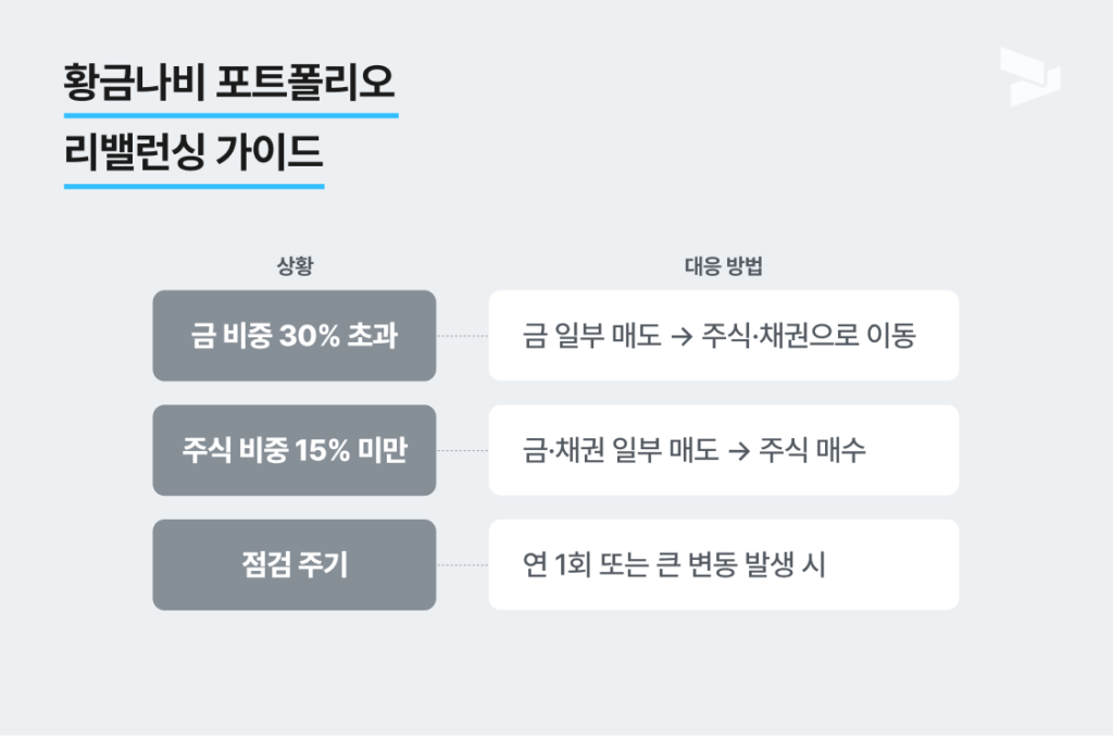 주식 비중이 있는 만큼 성장 가능성은 가져가되, 채권·금·현금 자산이 하락 구간에서 브레이크 역할을 합니다.