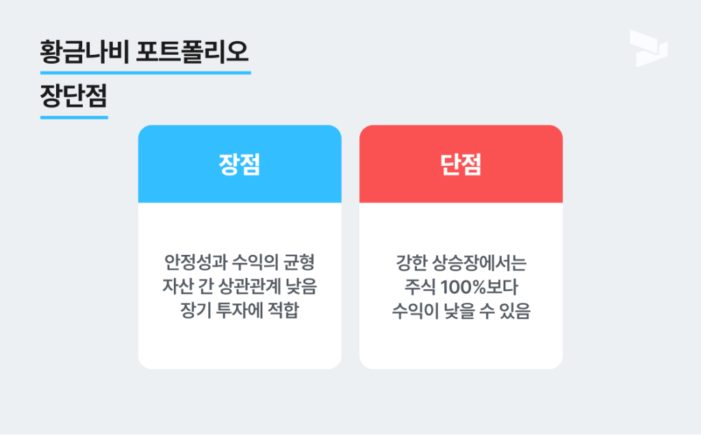한쪽 자산이 크게 흔들려도 전체 포트폴리오가 무너질 가능성이 낮다는 점이 가장 큰 강점입니다.